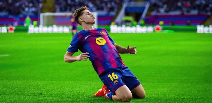 虎扑10月25日讯22岁的费尔明在欧冠对阵奥林匹亚科斯上演精彩帽子戏法后,将以绝佳状态迎来对阵皇家马德里的国家德比。这位巴萨小将参加了赛前的媒体日活动,当被问及若能在伯纳乌打入三球将作何感受时,费尔明不禁露出了笑容。